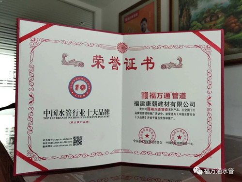 給水管道 熱烈祝賀福萬通管道榮獲《中國水管行業十大品牌》 中國水管行業十大品牌 熱烈祝賀福萬通管道榮獲《中國水管行業十大品牌》